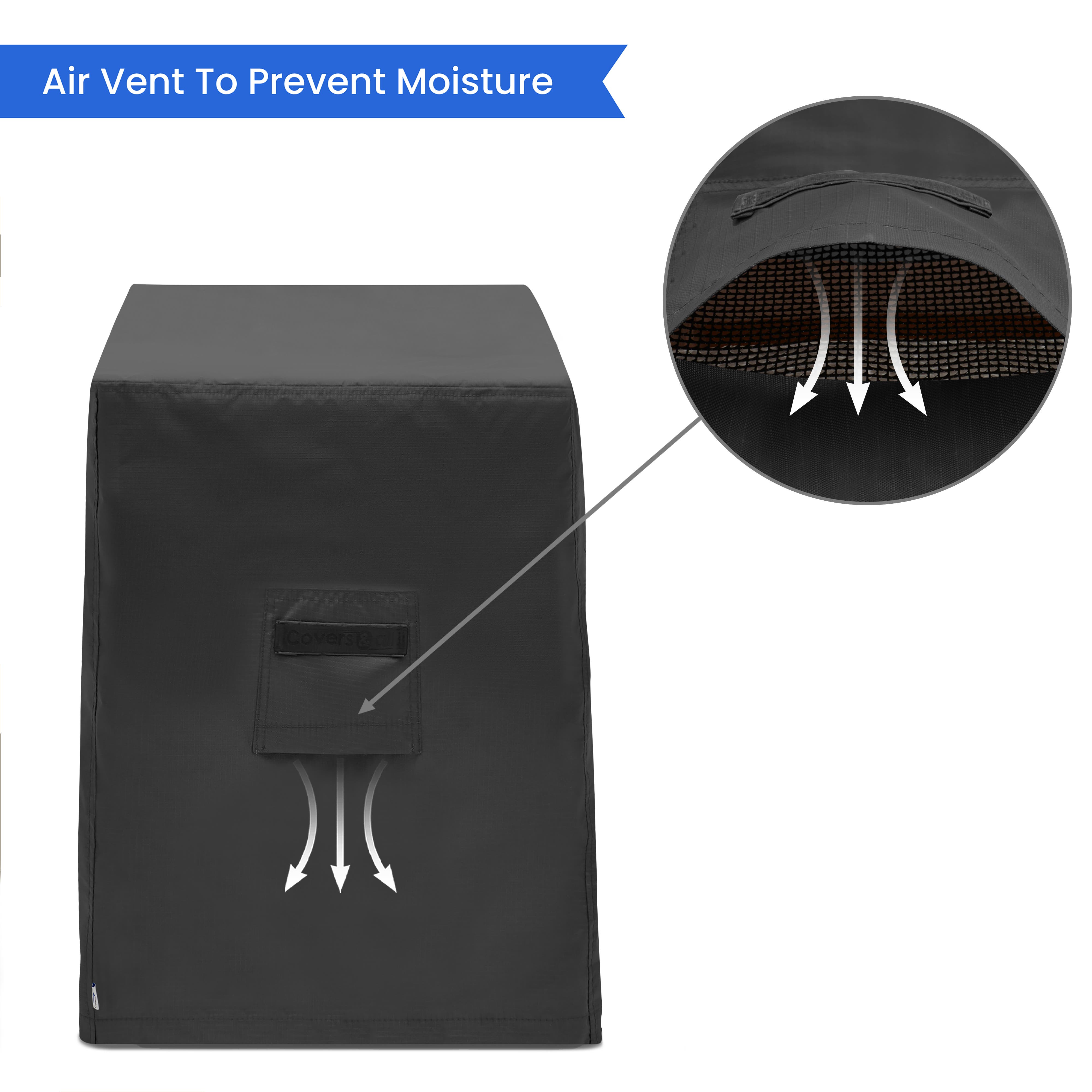 - Cover Rite - Crafted for all-weather durability, this eco-friendly, fade-proof, and abrasion-resistant 203 GSM 600 denier solution-dyed polyester with a PU coating delivers superior water and mildew resistance. The cloth-like exterior with a vinyl-coated back ensures optimal performance, making it perfect for both home and commercial use. Enhanced features include full-length air panels for improved airflow, branded diagonal top handles, and reinforced seam sealing with dual stitching for robust protection.