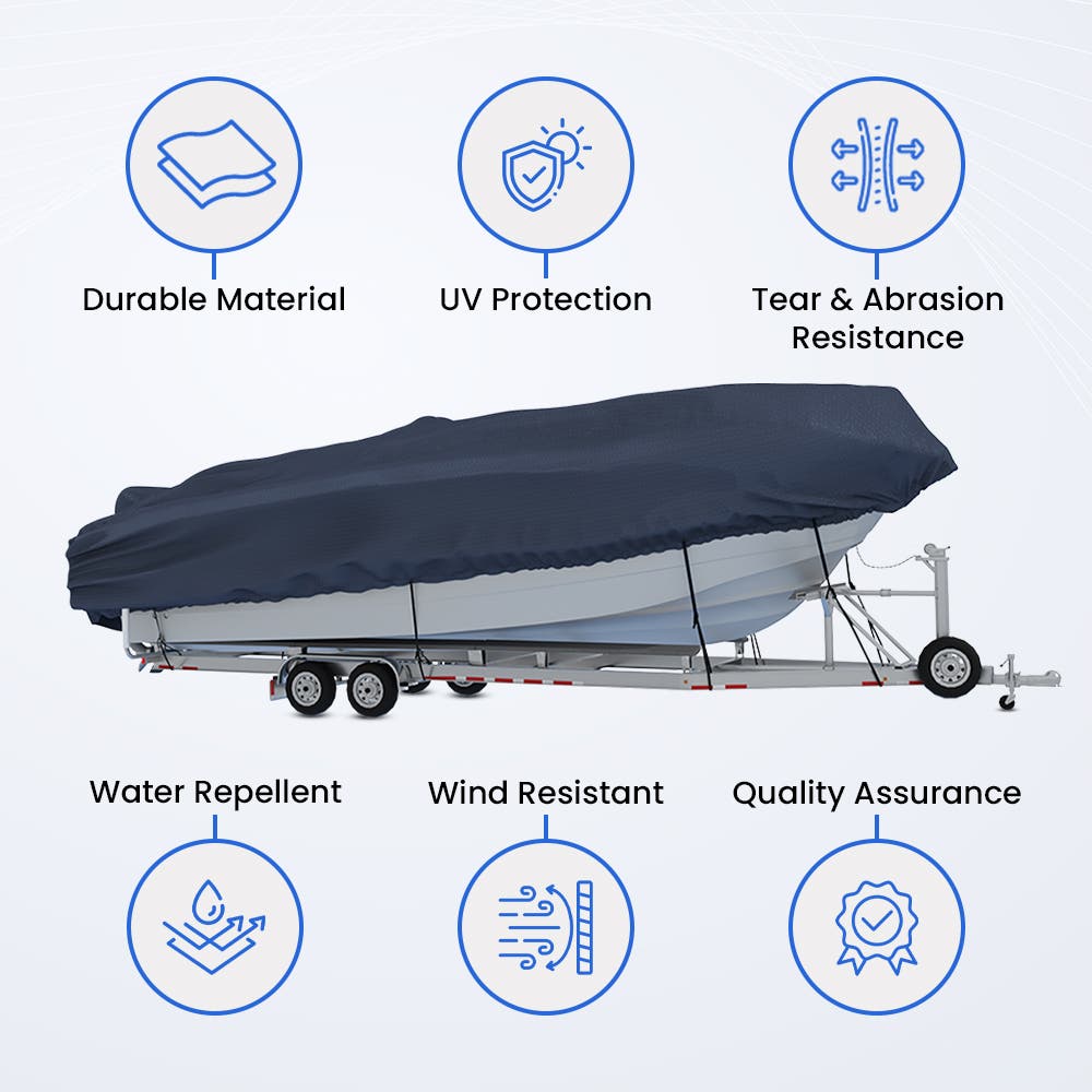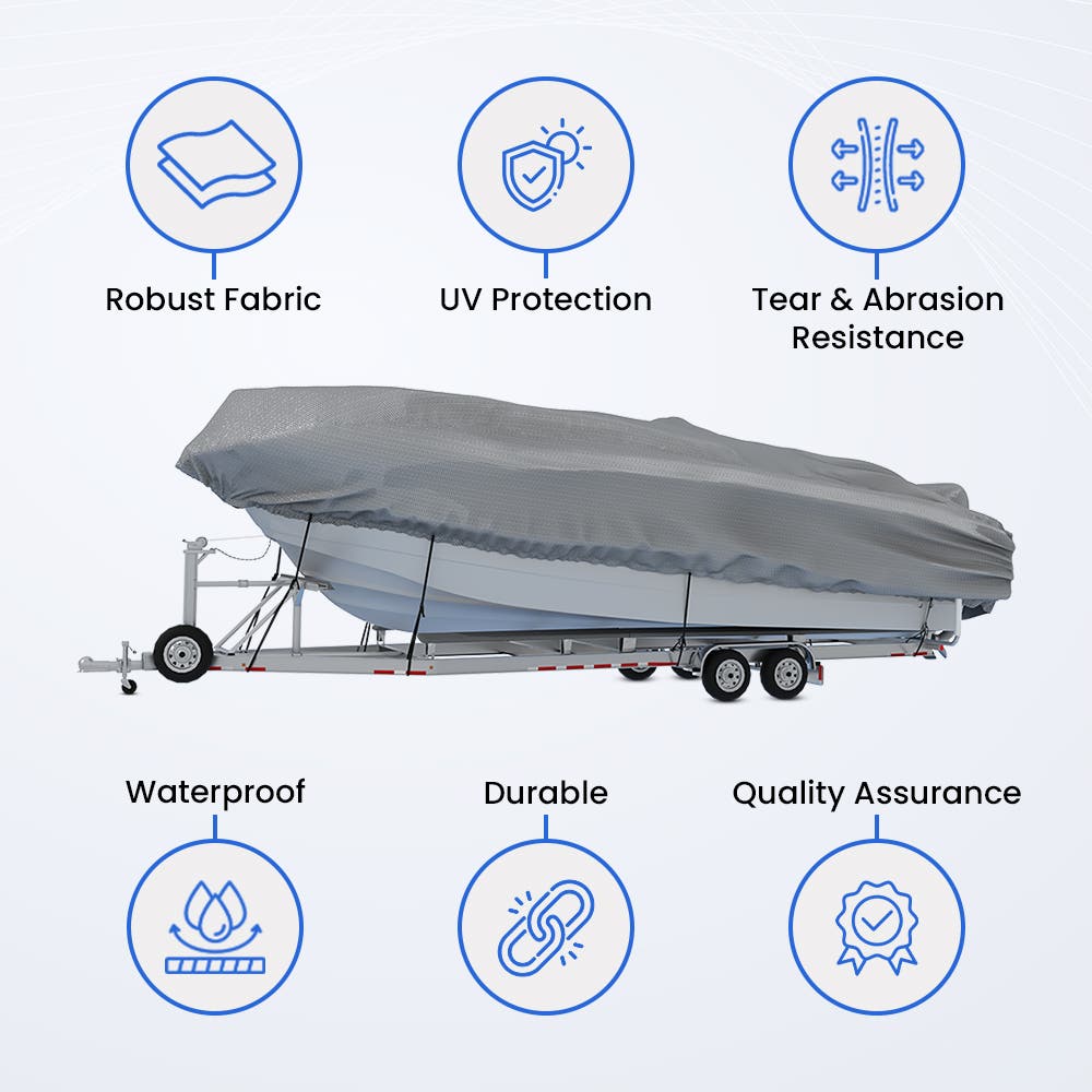 Engineered with a breathable fabric, our Covers facilitate excellent air circulation, effectively preventing mold, mildew, and moisture accumulation. This guarantees that your boat's interior remains clean, dry, and welcoming