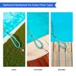 Crafted from heavy-duty braided HDPE, this custom safety pool net cover offers long-lasting strength and resilience. 12mm edge rope secures cover across the pool. Features high strength brass anchors and stainless steel hooks, supported by a central pulley and ratchet tensioning system. Built to withstand UV rays, chlorine, salt, and temperatures ranging from -20°C to +60°C, the net safely supports up to 65 kg of accidental weight.