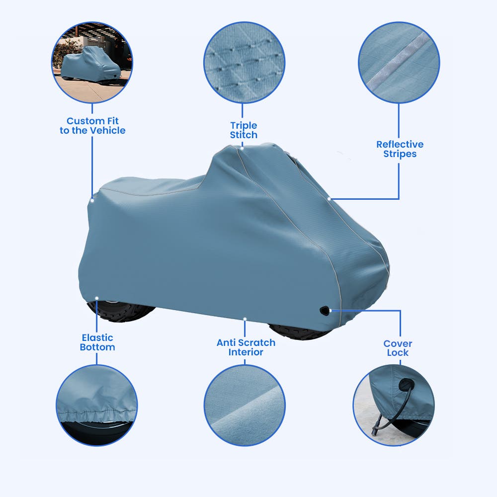 For ATV enthusiasts like you, your vehicle is more than just a machine - it's a symbol of freedom, a gateway to adventures, and an extension of your being. But in the middle of this excitement kicking in, there lies a desire to protect this two-wheeler, to safeguard it from the harsh weather elements. Here, our ATV Covers step in as guardians, wrapping your ATV with a snug fit and providing year-round protection. Ready-made covers don't offer sufficient defense because of its loose fit. Crafted with precision and all-weather protection, our custom designed covers become a shield for your ATV Motorbike.